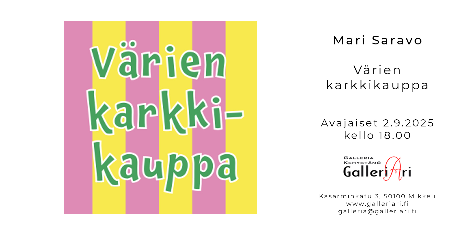 Lokakuussa GalleriArin vintillä on vanhan taiteen poistomyynti.GalleriAri ja Mari Saravo ovat mukana myös Museoiden yössä 24.10.2025 kello 17-23.Tervetuloa tekemään löytöjä!
