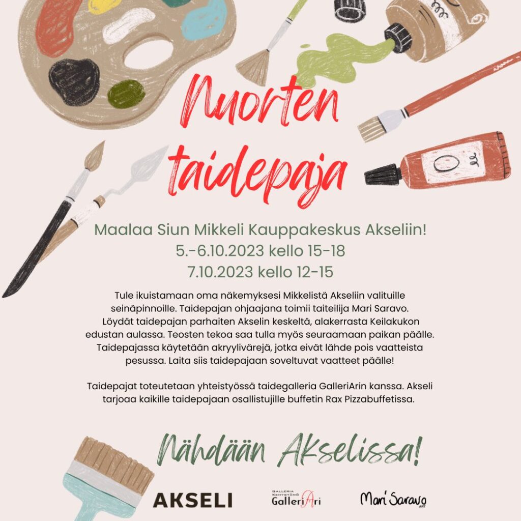 Taidepajat toteutetaan yhteistyössä taidegalleria GalleriArin kanssa. Akseli tarjoaa kaikille taidepajaan osallistujille buffetin Rax Pizzabuffetissa.