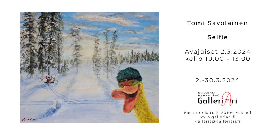 Juhlavuoden kunniaksi tarjotaan kakkukahvit gallerialla 2.3.2024 kello 10-13. Samalla avataan taiteilija Tomi Savolaisen Selfie taidenäyttely.