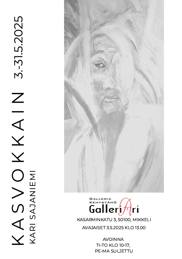 Toukokuussa GalleriArilla on esillä Kari Sajaniemi, Kasvokkain ja Arri Mäkeläinen, Mielikuvia taidenäyttelyt.