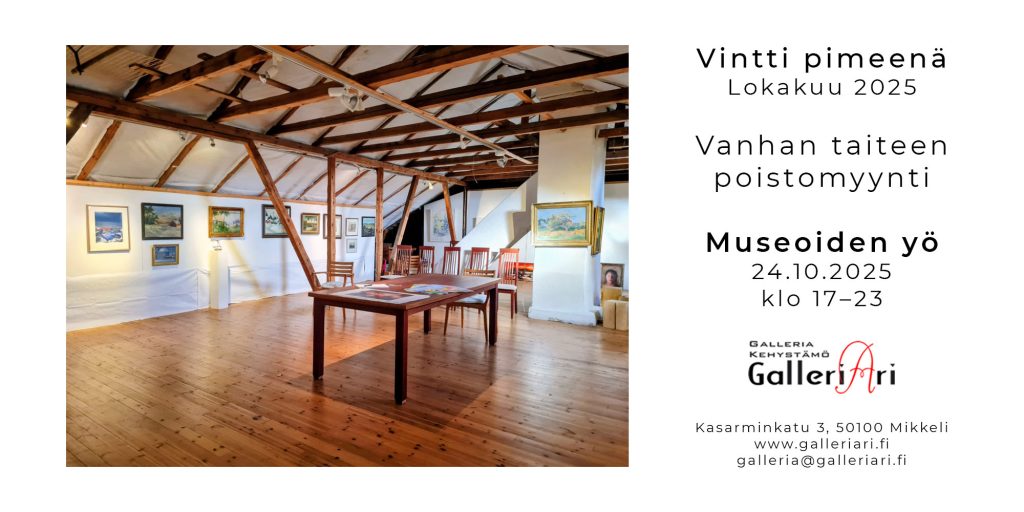 GalleriAri ja Mari Saravo ovat mukana myös Museoiden yössä 24.10.2025 kello 17-23.