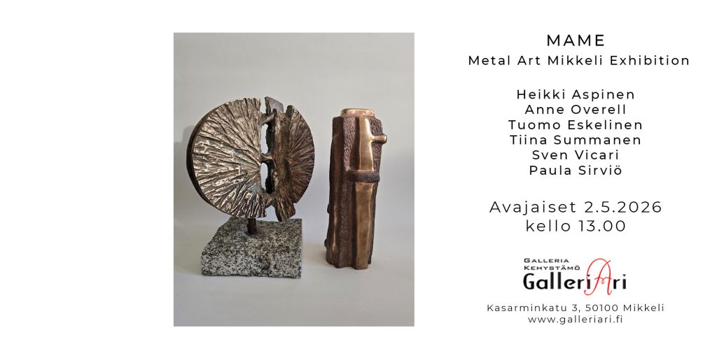 Tervetuloa MAME, Metal Art Mikkeli Exhibition taidenäyttelyn avajaisiin 2.5.2026 kello 13.00.
